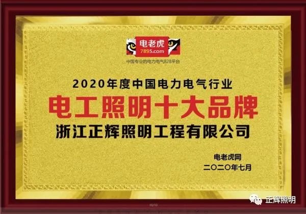 品牌榮譽!祝賀浙江正輝照明榮膺2020年“電工照明十大品牌”